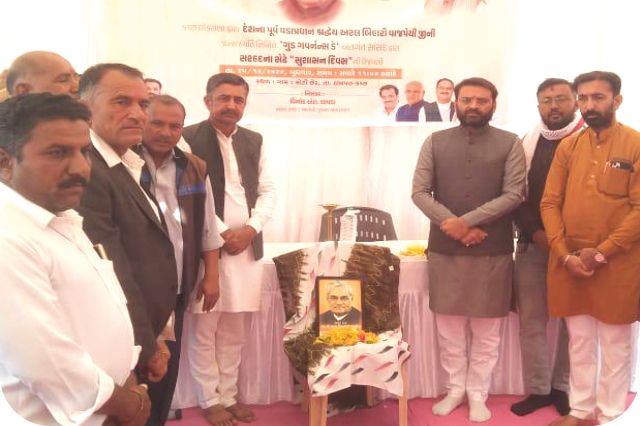 On the occasion of the birth anniversary of former Prime Minister and Bharat Ratna awardee, the revered Atal Bihari Vajpayee ji, a garland was offered to his statue in Bhuj today.
